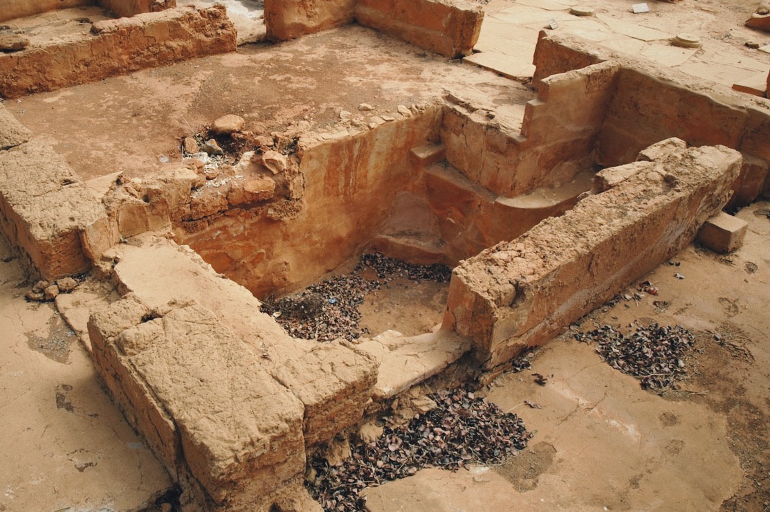 ▲ Luftaufnahme des „Chrysolakkos“-Hausgrabs nördlich des Palasts von Malia. © C. Messier