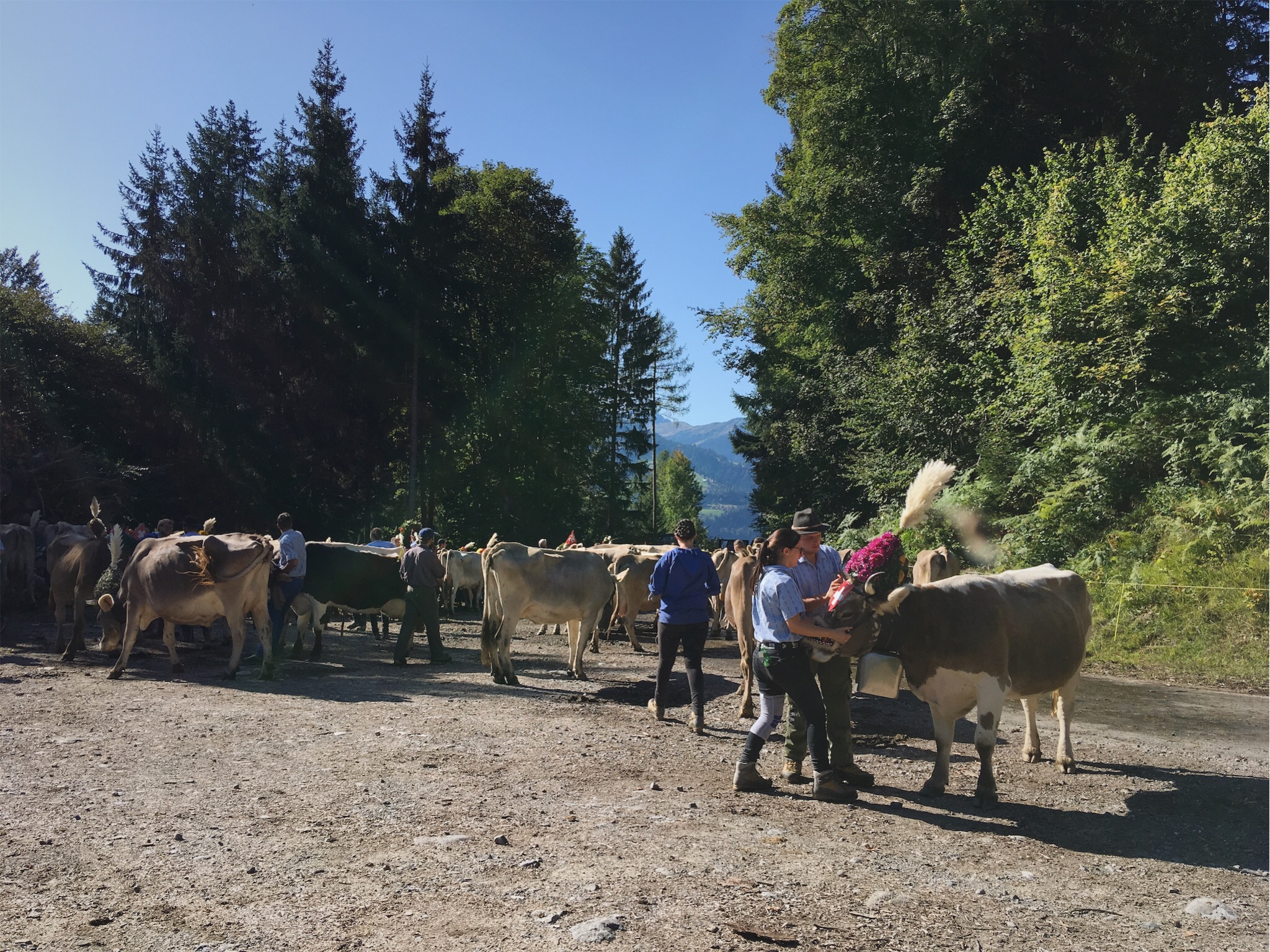 Meanwhile, extensive Alpine farming had also begun in the Middle Ages. Shepherds and mountain farmers gradually cleared the wooded mountain areas from top to bottom in order to develop or enlarge higher-lying alpine pastures. Seasonal farming created the characteristic landscape form of mountain pasture. An early form of economic specialisation set in, and, as was once the case with the aurochs, domestic cattle now drove sheep and goats from the pastures. Since the opening of the Gotthard route over the main Alpine ridge in the 13th century, cattle exports, initially to the Alpine foothills, had become increasingly important. Soon milk and cheese products were added. Growing population pressure and the search for ever new agricultural land led to migration movements such as that of the Walser. With the emigrants and via the trade routes, knowledge and skills in pasture farming also spread and standardised and professionalised the business. By the 15th century at the latest, the cow had established itself as the main economic factor. Its products meat, milk and cheese were exported to other European countries on an ever-increasing scale. Soon the marketing as a “domestic quality product” began.
