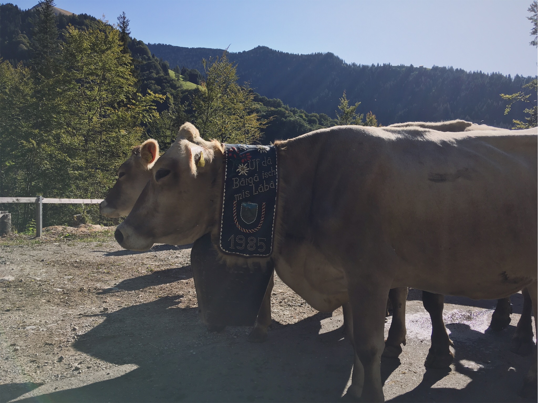 But in the historical context, the matter is quite different: all the cows, whether they are grey-brown or purple, spotted or not, are descended from a single original breed of the same animal species, the Eurasian domestic cattle (Bos taurus), and its origin is far from the Alps. It is the result of the domestication of the Eurasian aurochs (Bos primigenius) in the region of the fertile crescent in the Near East. In the territory of today’s Levant, in Syria, in southern Turkey and in the Mesopotamia of today’s Iraq, the first nomadic hunter-gatherer cultures began breeding animals from around 9500 BC onwards. Domestic cattle, domestic sheep and domestic goats were gradually liberated from the genetic corsets of their wild ancestors and carried along with the community as a living stock of meat and milk. In the “Neolithic Revolution” with the first sedentary farming cultures, the domestication of animals and the systematisation and intensification of livestock farming took place even more radically, not least because of the introduction of the yoke and the use of oxen to plough the fields. Waves of migration caused the spread of the new animal breeds. A few thousand years later, the first shepherds with their herds and the first settled farming communities with livestock had crossed the Bosphorus. Further north, ecumenism spread across the shores of the Black Sea to Western Europe. Still a little later, the first cows probably entered the steep and rocky Alpine soil.