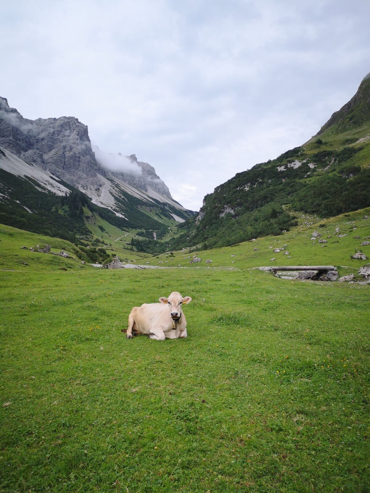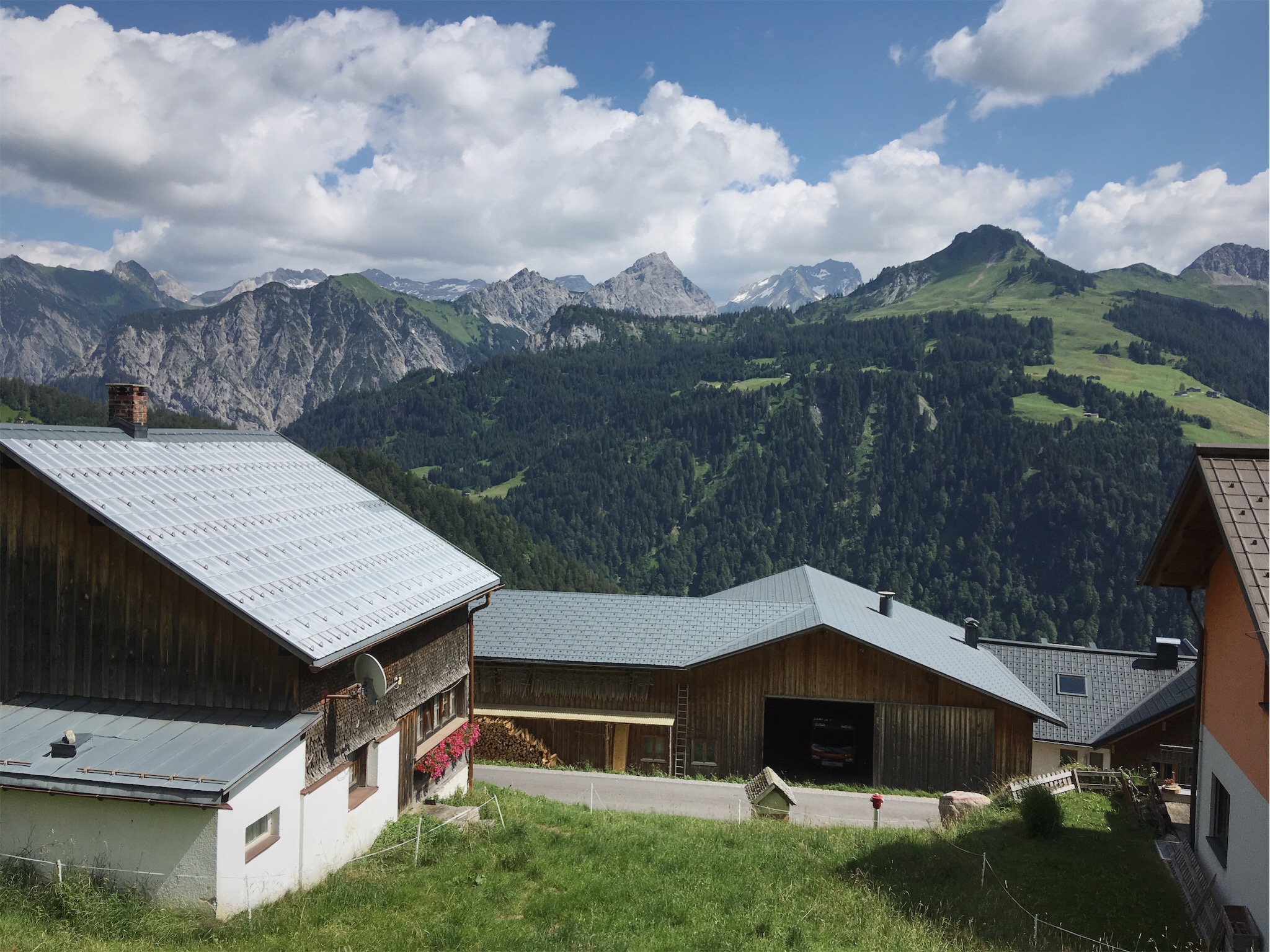 With a total ascent of 1,609 metres in altitude, this would not be an easy first stage, that was clear. Like the slow crescendo of a concert movement, the relatively flat passage through the Bregenzerwald is followed first by a slow ascent to Damüls and then – quasi as a final, reversed cadenza – a short steep climb to Faschina in the Walser Valley. But one after the other. Early in the morning in Oberstaufen (Allgäu) I sat on a bench of the observation platform “Hochgratblick”, with the two angels of the large sculpture swinging their trumpets towards the mountains in my back, and drank my coffee. I could not imagine a more fitting beginning for the great concert of the Alpine crossing. Perhaps the imaginary fanfare would even provide some tailwind.