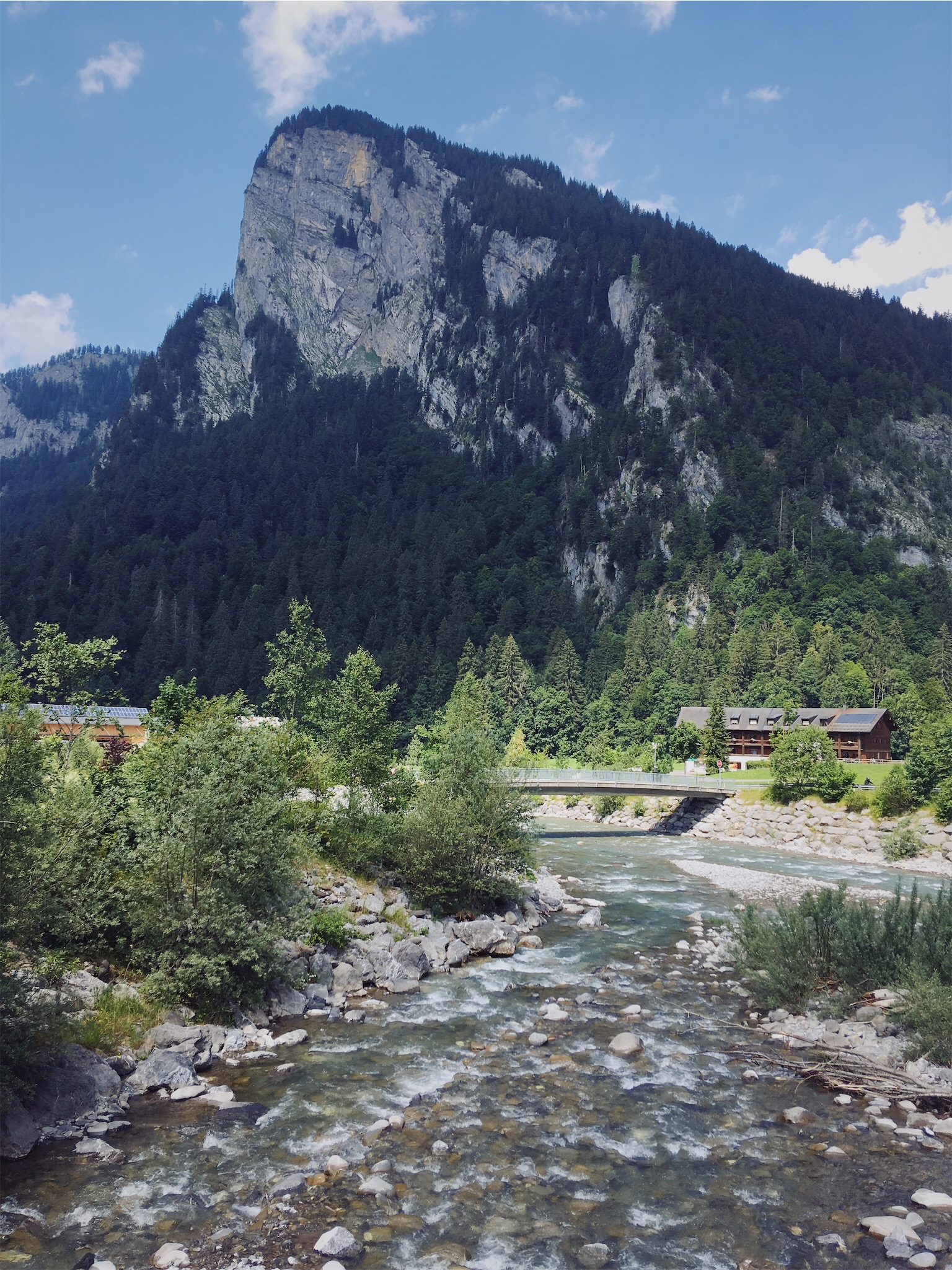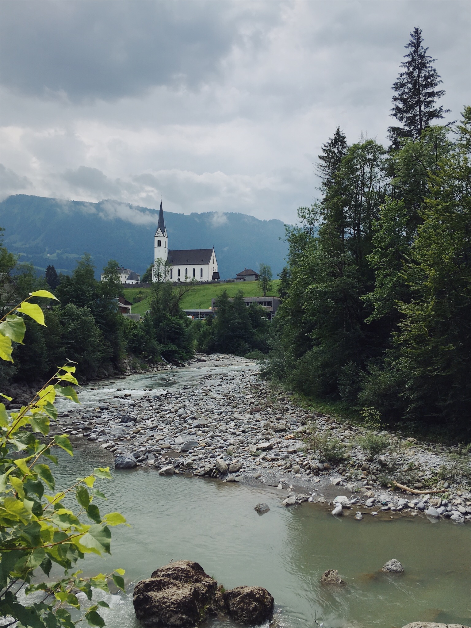 On the 90 meter high Lingenau bridge, I got a real mountain feeling for the first time when I could watch a large group of whitewater canoeists deep down in the valley of the Weißach river – as good as I could through the bridge, which was completely blocked off with wire mesh. Here I made my first acquaintance with the Bregenzer Ach, which would now accompany me on a stretch of almost 30 kilometres through the Bregenzerwald.
