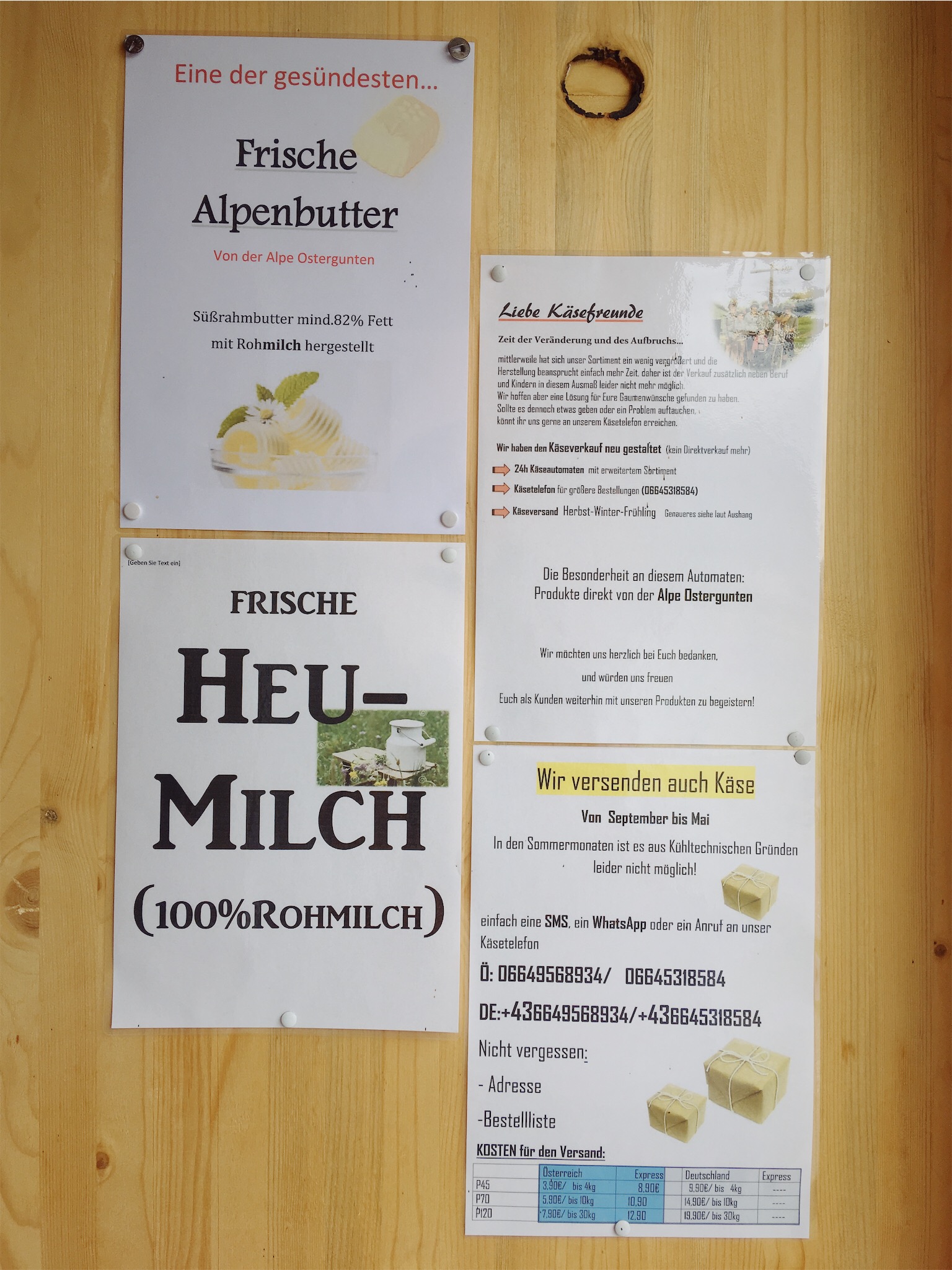 More and more dairies have therefore long since switched to the direct sale of specialities. In some cases they now only produce mountain cheese from raw milk, which for centuries was the main foodstuff of the local population. They know more about this than any large company. Without the agricultural aid from the EU and the country of Austria, however, it would not be possible. You have to be able to afford to set up cheese vending machines at a cost of several thousand euros. In order to keep the quality constantly high, there are strict requirements for cheese production prescribed by the state. Appropriate keeping of the species, cleanliness of the farms and facilities etc. are regularly checked. Above all, the use of silage-free milk is important – milk from cows that are fed without silage fodder and exclusively on grass and hay. Whether in reality one or two balls of concentrated feed wheat find their way into cow bellies is another matter.